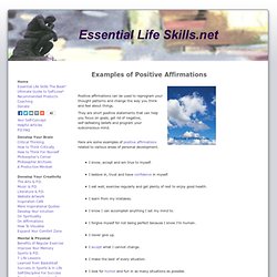 Using affirmations on a regular basis is a powerful technique for change. Your subconscious mind does not recognize the difference between an actual experience and a positive or negative thought, Believe in your affirmation and anticipate the success ... Document Viewer